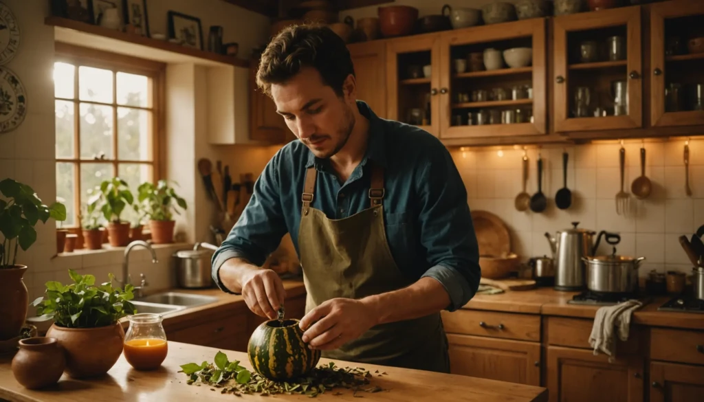 La préparation du maté vert suit un rituel précis, hérité des traditions guaranis et transmis de génération en génération. Vous aurez besoin d’une calebasse, récipient traditionnel taillé dans une courge séchée, et d’une bombilla, paille métallique dotée d’un filtre à son extrémité. Remplissez la calebasse aux deux tiers de feuilles de maté, inclinez-la pour former une pente, puis versez de l’eau chaude (entre 70 et 80 °C) sur le côté où les feuilles sont moins nombreuses. Insérez la bombilla et laissez infuser quelques instants avant de déguster.